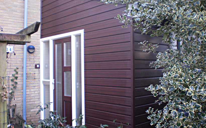 De kunststof (Keralit) gevelbekleding is niet meer te onderscheiden van de traditionele houten gevelbekleding. De panelen zijn o.a. leverbaar in houtnerfstructuren en verschillende kleuren naar uw wens.